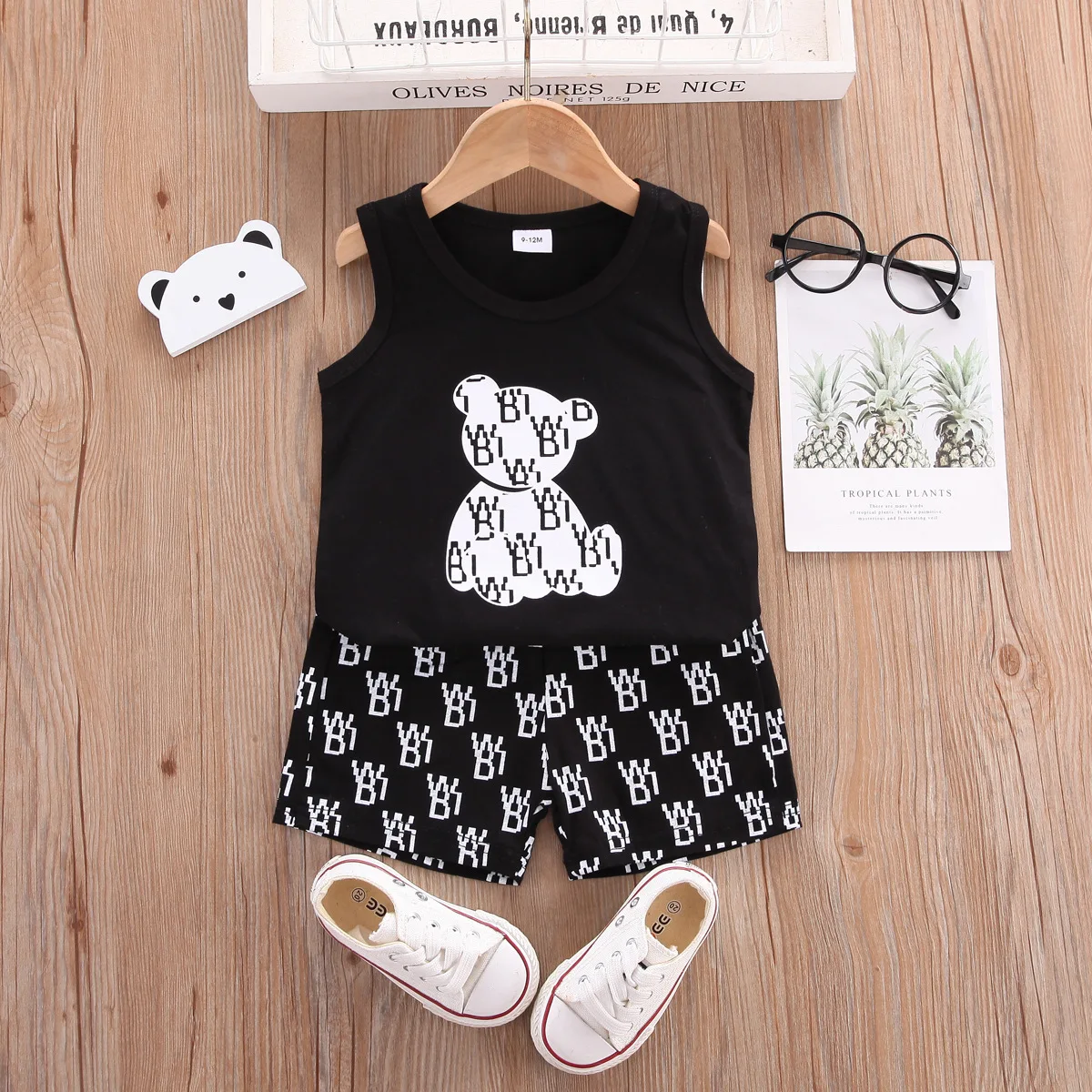 Wholesale Summer Kids Clothing Set Korean Version Two-Piece Cotton Vest and Sleeveless Shorts for Little Boys